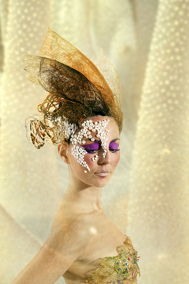 Cabellos ámbar tejidos en malla fina,